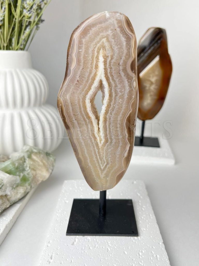 იცოდით, რომ საქართველო ძალიან მდიდარია აქატის საბადოებით? ჩვენ მაღაზიაში სტუმრობისას, აუცილებლად დააკვირდით შესაბამის წარწერებს და ბევრ საინტერესო ნიმუშს ნახავთ. 🧐 ბევრმა არ იცის, რომ აქატი არის წვრილბოჭკოვანი ქალცედონი, რომელზეც ფორმირების პროცესში ლამაზი ნახატი გამოჩნდა. ეს შეიძლება იყოს სხვადასხვა სისქის ნახევრად გამჭვირვალე სწორხაზოვანი და კონცენტრული ფენები, რომლებსაც უბრალოდ ხაზებს და წრეებს ვეძახით. ამ ფენების ფერის, ზომის და ფორმის მიხედვით აქატები იმდენად მრავალსახეობრივია, რომ უკვე XVIII საუკუნეში მინეროლოგები მიხვდნენ, რომ ყველას ჩამოთვლა უბრალოდ შეუძლებელია. 🤷♂️ დღეს რუხ აქატზე მოგიყვებით, ის ერთერთი ყველაზე მოთხოვნადი მინერალია. ეს არ არის შემთხვევითი, ის უნაკლოდ გამოიყურება საიუველირო ნაკეთობებში და, გარდა ამისა, აქვს ძლიერი #ენერგეტიკა და გამოიყენება სამკურნალოდ. X საუკუნიდან ქართველები ამუშავებდნენ ჭრილობებს წყლით, რომელშიც გახსნილი იყო რუხი აქატის ფხვნილი. ასეთი ხსნარით ასევე მკურნალობდნენ შხამიანი ქვეწარმავლების და მწერების ნაკბენებს. ითვლება, რომ რუხი აქატი საუკეთესოდ ავლენს თავის სამკურნალო თვისებებს სპილენძის ჩარჩოში. რუხი აქატი ძალიან ეფექტურია თირკმელების და კუჭნაწლავის სისტემის დაავადებების მკურნალობისას. ატარეთ ამ მინერალის ყელსაბამი ან გულსაბნევი ყელის ტკივილის, ბრონქიტის და ასთმის დროს, საყურის ტარება გაგიყუჩებთ კბილის ტკივილს. 🚑 რუხი აქატი ხშირად გამოიყენება როგორც თილისმა ☀ და ითვლება, რომ მისი ტარება ეხმარება მფლობელს კონფლიქტური სიტუაციების დროს. ეს მინერალი არის კეთილი, პატიოსანი და სამართლიანი ადამიანების მფარველი. 😊 მაგრამ თუ მისი მფლობელი არ არის ღირსეული პიროვნება, მინერალი მიიზიდავს უბედურებას. 😨